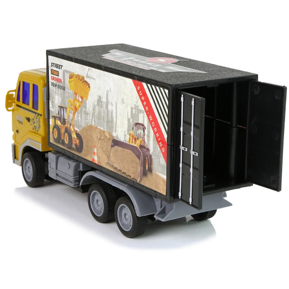 Ciężarówka przypomina prawdziwy odpowiednik, który jeździ po drogach. Maluch w trakcie zabawy obserwuje jej wygląd, cechy oraz budowę. Teraz w domu może mieć swoją miniaturową wersję. Wykonana jest w skali 1:24. Uzupełni cały zestaw potrzebny na placu budowy. Zabawa z jej wykorzystaniem wpłynie na wyobraźnię i kreatywność dziecka.
