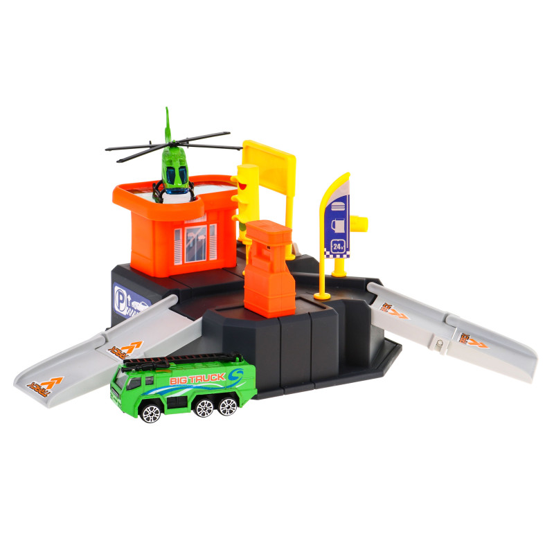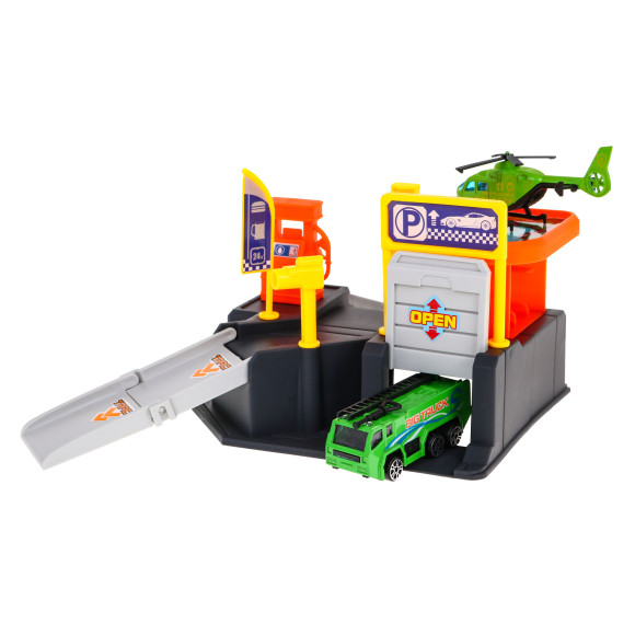 | - parking, - autko, - helikopter, - naklejki, - mata z drogami. |