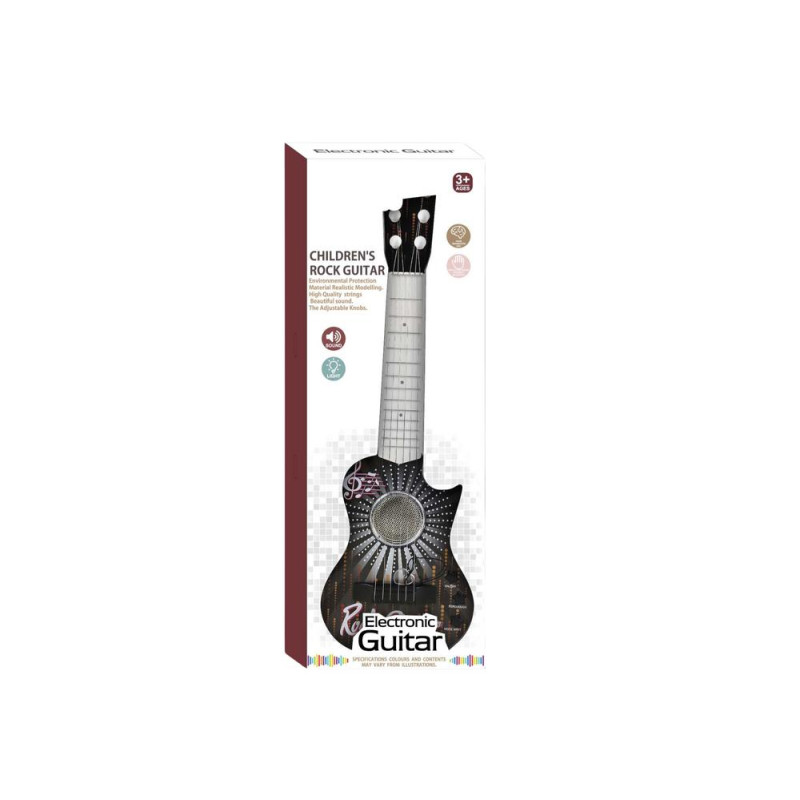 Zaopatrzona w 6 metalowych strun o różnej grubości, pozwala na eksperymentowanie z dźwiękami i tworzenie własnych melodii. Wbudowany głośnik gwarantuje czyste brzmienie, a tryb z podkładem gitarowym oraz różnorodne melodie rockowe umożliwiają różnorodność w muzykowaniu.