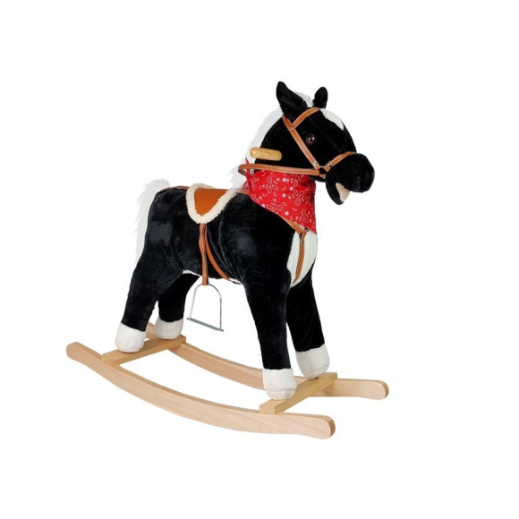 Przy głowie konia znajdują się uchwyty wykonane z drewna, które zapewniają pewny chwyt i bezpieczną zabawę. Siodło wyposażone jest w wygodne strzemiona.
