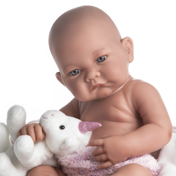 Kolejna propozycja hiszpańskiej marki Antonio Juan uzupełnia kolekcję lalek w rozmiarze 42 cm. Lalka hiszpańska o imieniu Nica 50086 w najmniejszym szczególe przypomina prawdziwego bobasa. Lalka ma zaznaczoną płeć (dziewczynka), a na jej brzuszku znajduje się kawałek nieodciętej pępowiny. Maluch na główce ma rzeźbienia, które wyglądem przypominają prawdziwe włoski dziecka.