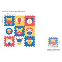 - 9 miękkich puzzli piankowych z wyjmowanymi zwierzątkami składającymi się z kilku elementów. |