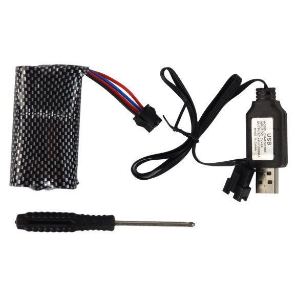 Pistolet zasilany jest na akumulator 7.4V, który jest elementem zestawu. Do akumulatora dołączona jest oryginalna ładowarka.