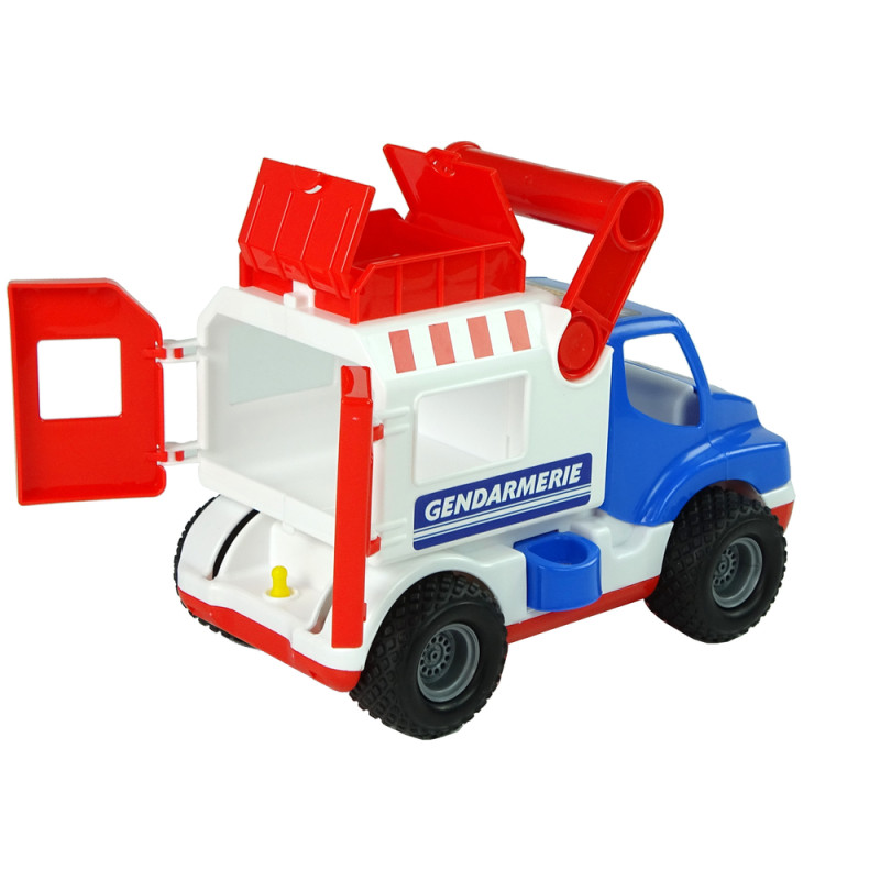 Autka dla naszych najmłodszych. Przedstawiamy samochód żandarmerii Construck przeznaczony dla dzieci powyżej 1 roku życia. Od najmłodszych maluch ma możliwość poznać otaczający go świat, będzie stanowić też swojego rodzaju naukę. Naklejki przedstawiają pojazd żandarmerii. Zabawa wspomaga u dziecka rozwinięcie precyzji, chwytu oraz zdolność logicznego myślenia. Spraw maluszkowi frajdę na długie godziny.