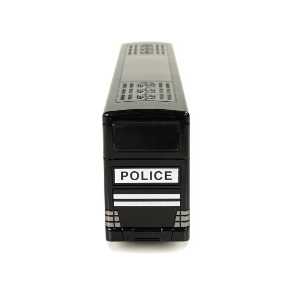 Pudełko, w które jest zapakowane, będzie ładnie prezentować się na półce. Autobus posiada napędem pull-back, wykonany został z plastiku na gumowych oponach. Wnętrze auta ma odwzorowany każdy detal, który będzie przypominał prawdziwy odpowiednik. Na bokach czarnego autka widnieją białe wzory, napis POLICE i charakterystyczne naklejki. Zabawka rozbudzi w Twoim dziecku dużą ciekawość i na pewno jedno z tych autek dołączy do jego kolekcji.