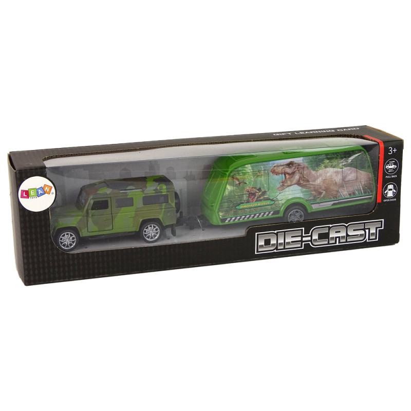 Zestaw Pojazdów Jeep z Naciągiem Przyczepa z Dinozaurami