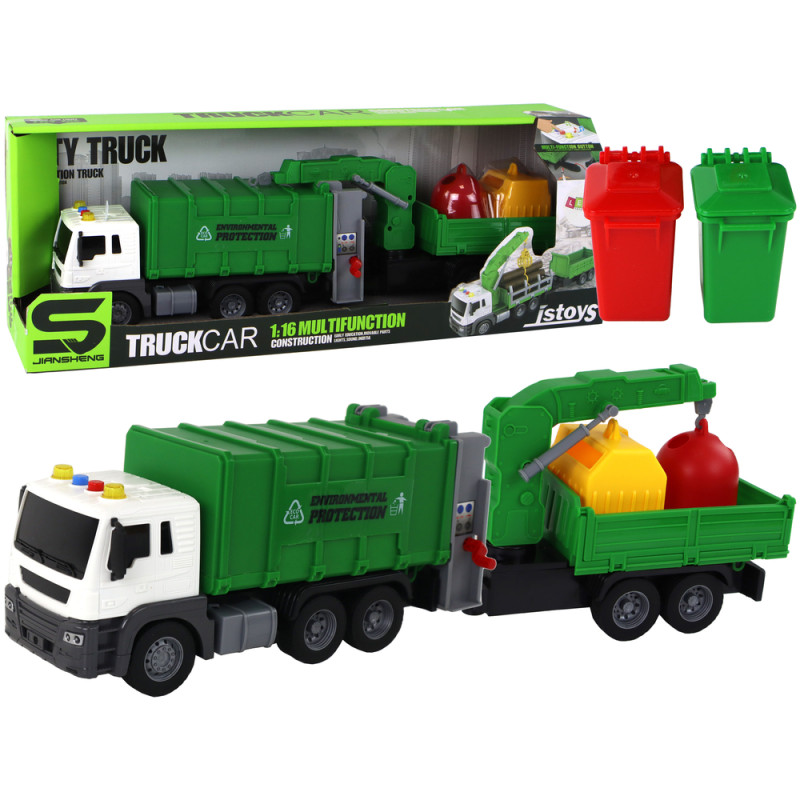 Ciężarówka Śmieciarka Z Dźwigiem Napęd Frykcyjny Zielona 1:16