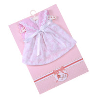 Ubranko jest przeznaczone dla lalki o wysokości 20 cm. Komplet składa się z sukienki zapinanej na rzepę i ozdobionej wzorem w różowe kokardki. Strój urzeka, mięciutkim i przyjemnym w dotyku materiałem. Komplet idealnie nadaje się na spacer z lalą, herbatkę u koleżanki czy bal.