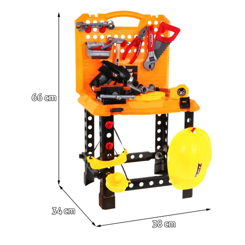 | - warsztat ok. 66 cm x ok. 38 cm x ok. 34 cm, - walizka ok. 34 cm x 37,5 cm x 8 cm, - kask ok. 23,5 cm x 17,5 cm, - opakowanie ok. 58,5 cm x ok. 39,5 cm x 12,5 cm. |