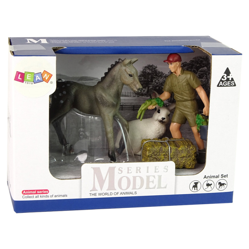 Zestaw Figurek Zwierzęta Koń Szary Zając Rolnik