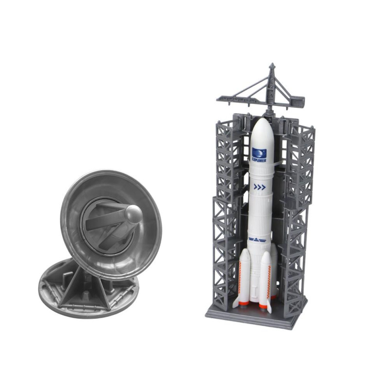 Znajdziemy w nim również miniaturkę satelity, która może być wykorzystany do badań atmosferycznych na innych planetach oraz rakietę gotową do startu w niezwykłą, kosmiczną misję. Zestaw zawiera również wyrzutnię rakietową, która umożliwia dzieciom wysyłanie rakiet w przestrzeń kosmiczną.