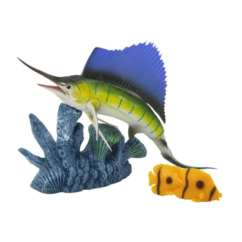 Co więcej, figura ryby miecznika została wyposażona w ruchome płetwy oraz ogon, co dodaje interaktywności i możliwości różnorodnych aranżacji podczas zabawy. Dzięki temu dzieci mogą łatwo odgrywać różnorodne scenki z życia podwodnego, rozwijając przy tym swoją wyobraźnię i kreatywność.
